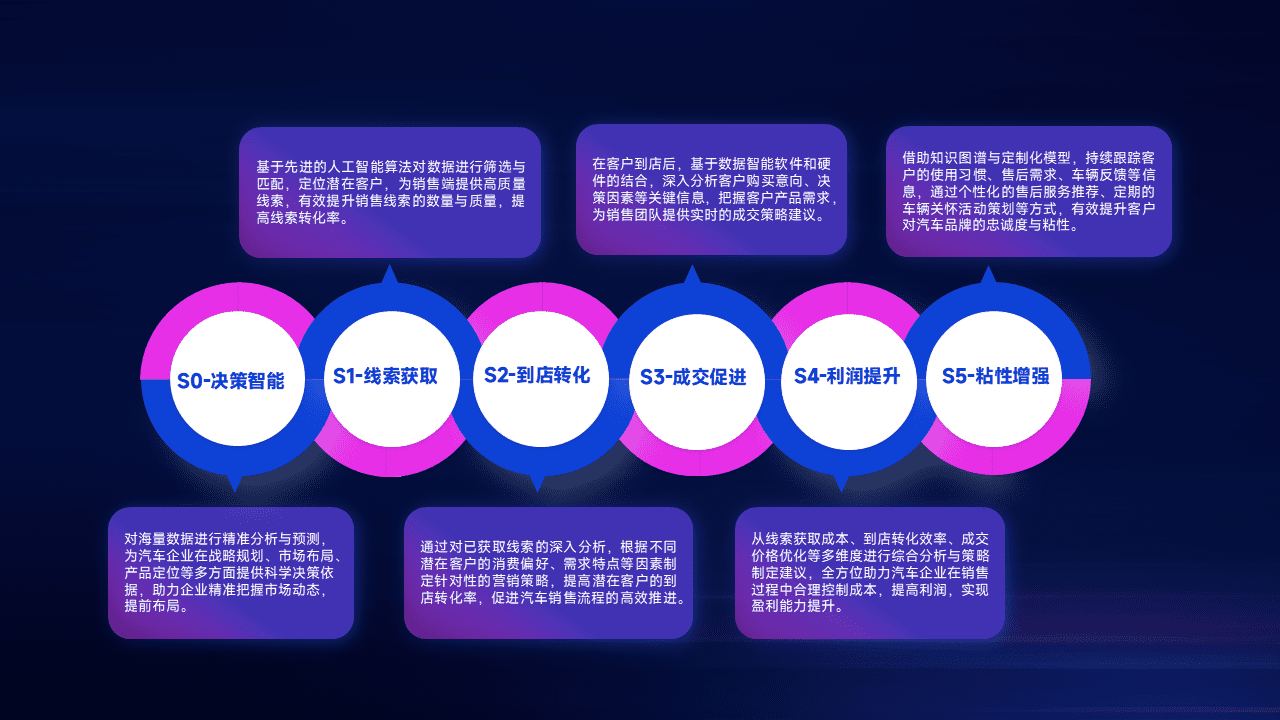 通过拓宽潜在客户来源、、、、优化线索分配并提高到店转化率,,,,以增强销售效率。。同时,,,利用线索数据不断优化分析模型,,,,有效提升转化率,,,扩大营销影响力。。。。